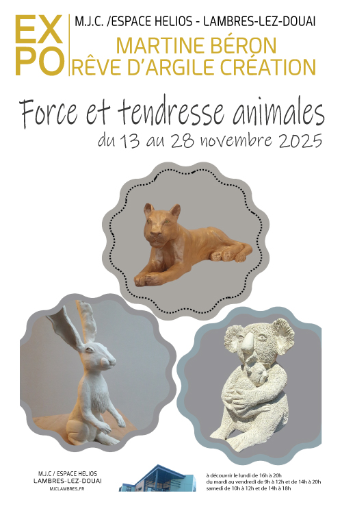 Présentation de sculptures d'animaux sauvages.